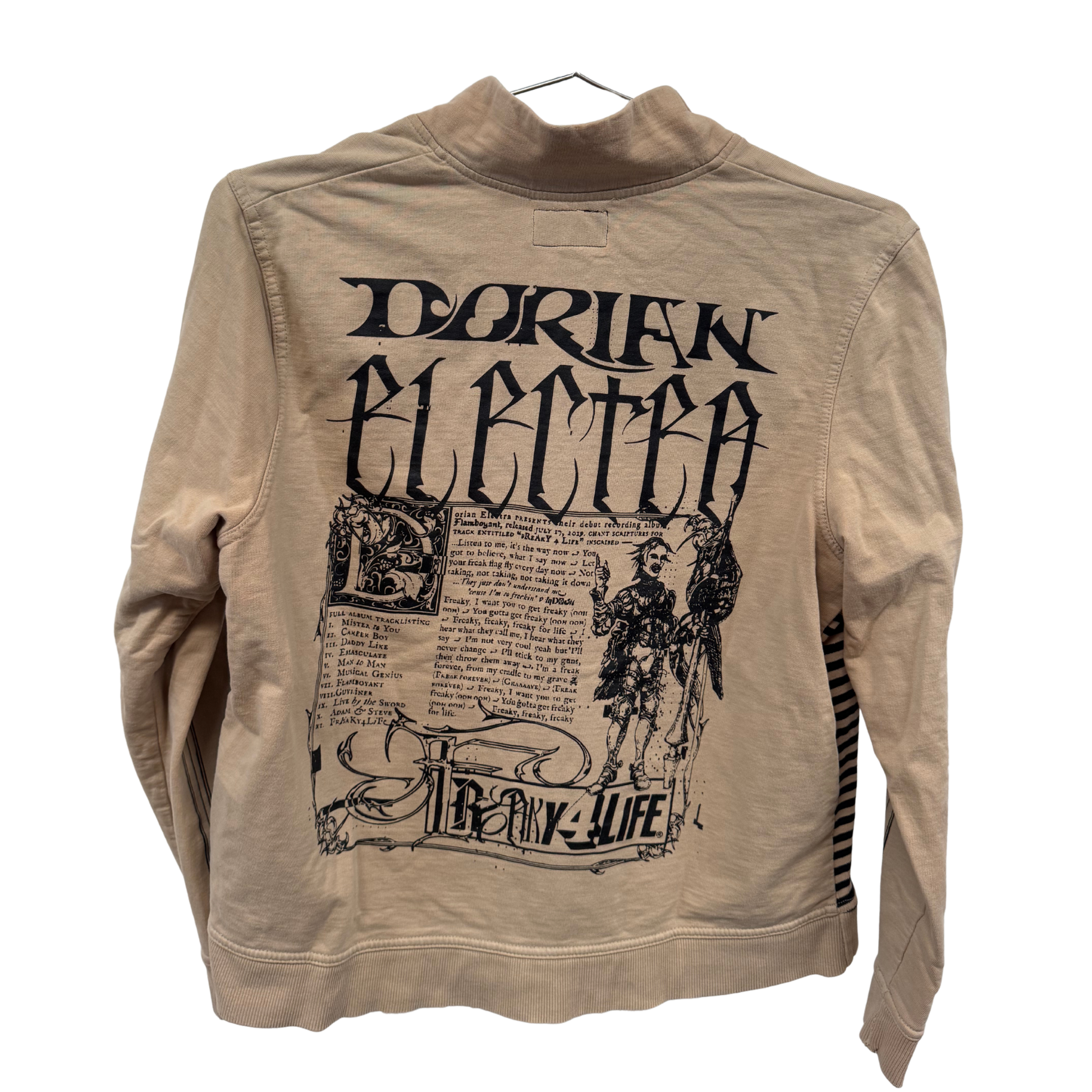 Printed musical genius, DE musical star, tablet, sword sleeves, camel beige with striped sides, mock neck zip-up