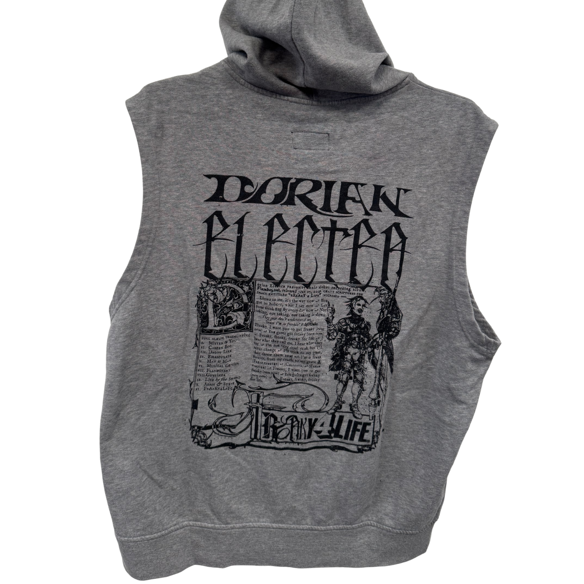 Printed musical genius, DE musical star, tablet, light grey zip-up vest.